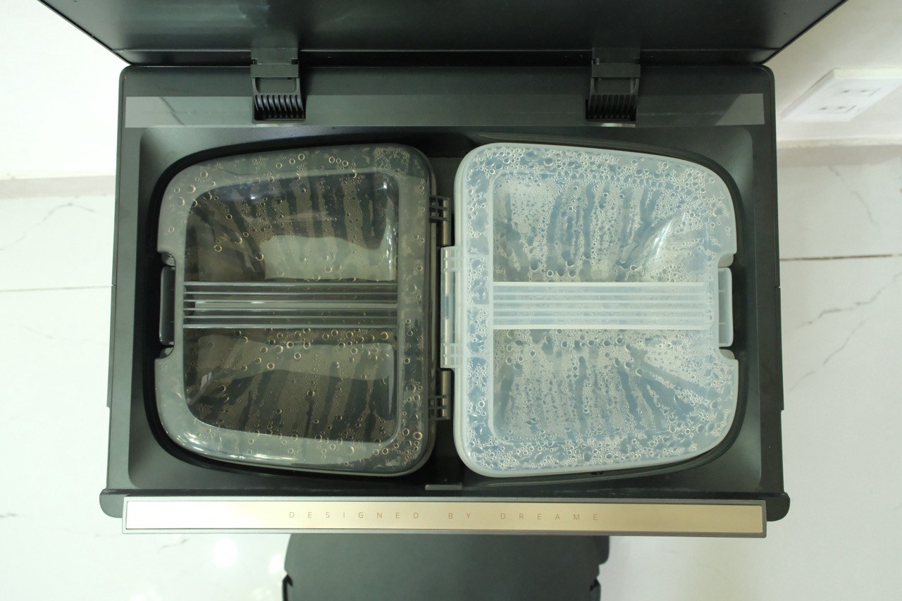 Về mặt vệ sinh, giặt bằng nước sôi kết hợp quay tiến - lùi giúp loại bỏ dầu mỡ và vi khuẩn hiệu quả hơn đáng kể so với nước lạnh hoặc nước ấm. Sau đó, luồng khí nóng 65°C sấy khô con lăn, giảm nguy cơ nấm mốc và mùi hôi - vấn đề thường gặp ở robot lau nhà sử dụng giẻ ẩm lâu ngày. Dreame cũng xử lý bài toán an toàn bằng cách hạ nhiệt trước khi robot rời trạm, tránh rủi ro cho trẻ nhỏ và thú cưng.