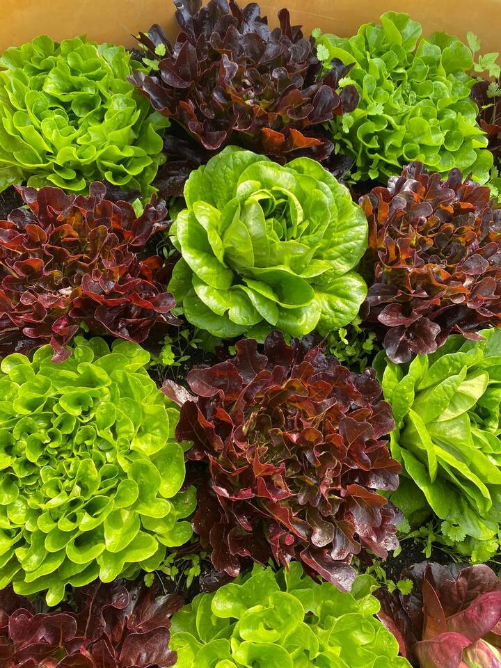 Người dân tự trồng rau xà lách tại nhà. (Ảnh: Trúc Hòa)