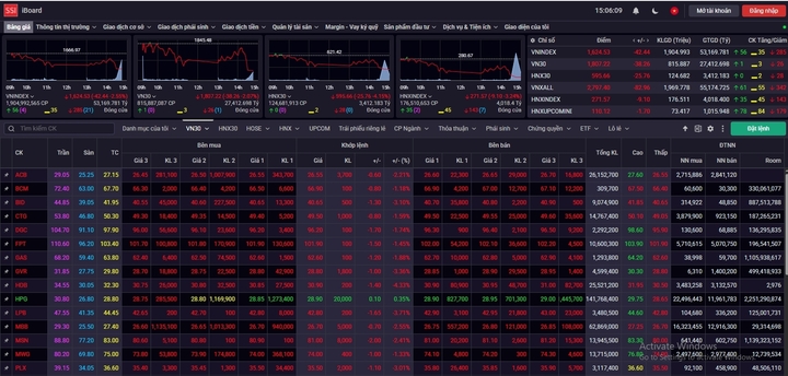 Sau giờ nghỉ trưa, nhóm vốn hóa lớn thu hẹp sắc đỏ khi rổ VN30 có 8 mã tăng. HPG và SSI dẫn đầu với mức tăng trên 2%. Ở chiều ngược lại, lực mua xuất hiện giúp các mã ngân hàng thu hẹp biên độ giảm.