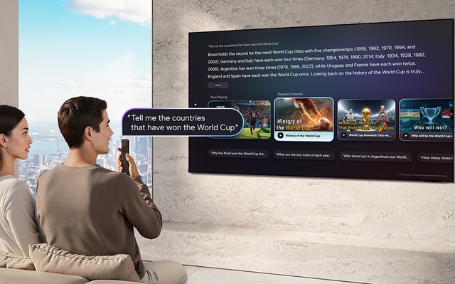Không chỉ phản hồi, trợ lý Vision AI còn hiểu ngữ cảnh và chuỗi hội thoại tiếp theo, hiển thị thông tin liên quan ngay trên màn hình. Nội dung đa dạng từ phim ảnh, truyền hình, nghệ thuật, ẩm thực, thể thao hay du lịch được trình bày dưới dạng hội thoại, tạo nên sự giao tiếp tự nhiên và liền mạch với TV.