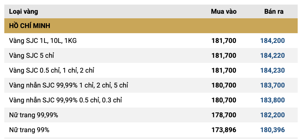 Giá vàng nhẫn cũng được các doanh nghiệp điều chỉnh tăng mạnh trong hôm qua, mức tăng cao nhất 7,2 triệu đồng/lượng; mức bán ra cao nhất là 183,7 triệu đồng/lượng.