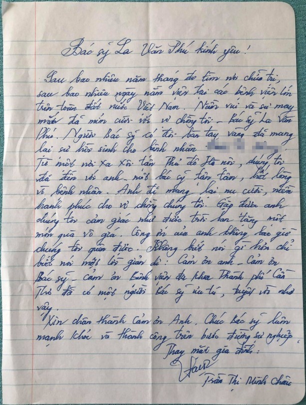 Bức thư tay bệnh nhân gửi cho bác sĩ La Văn Phú