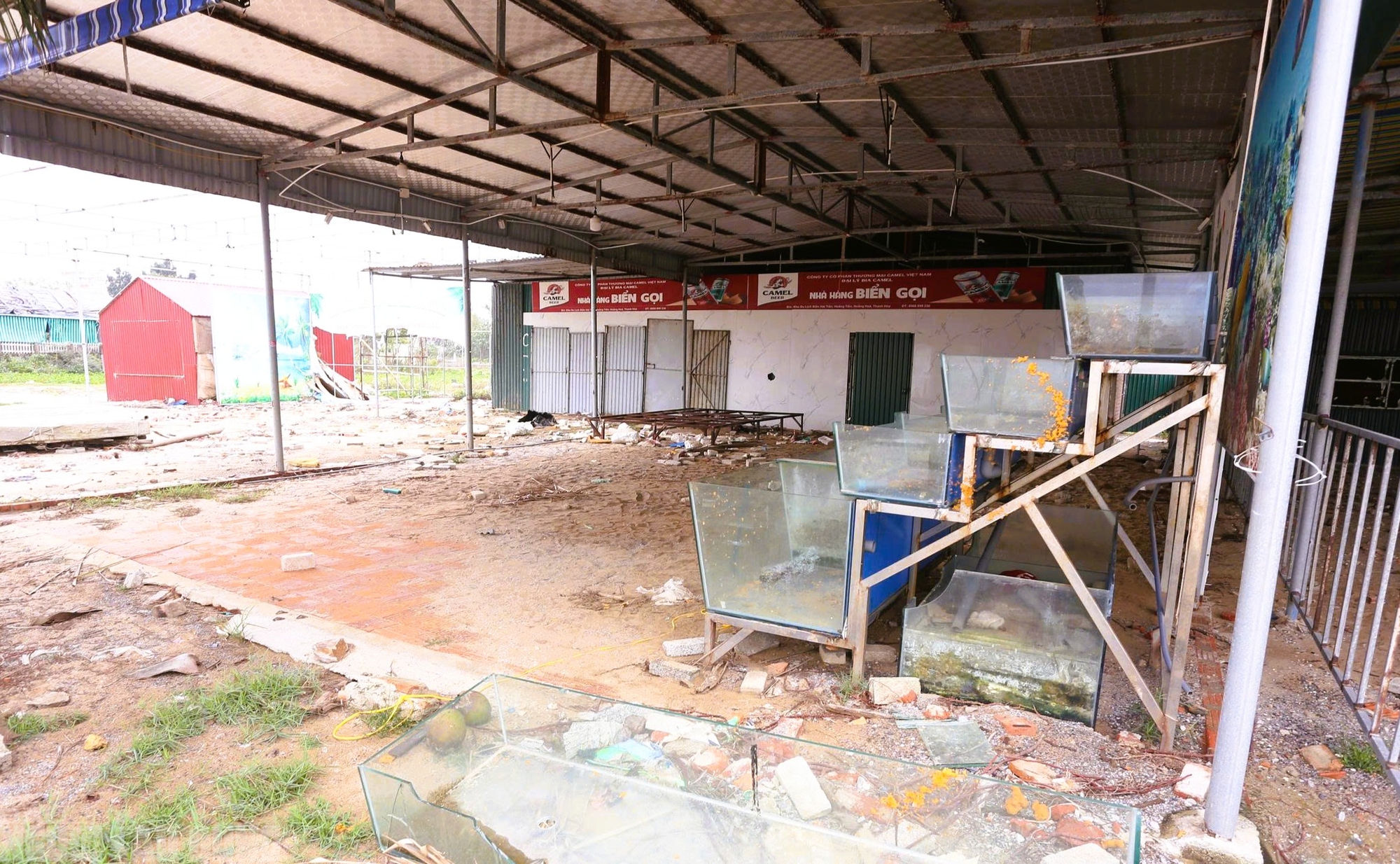 Nhiều cửa hàng ăn uống cũng trong tình trạng tan hoang, đất đá ngổn ngang