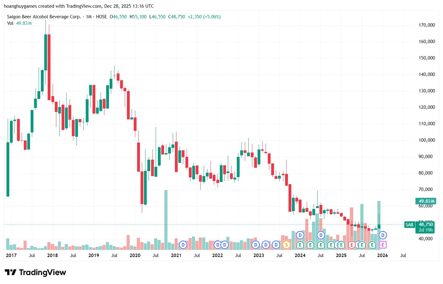 Tuy nhiên, sau 8 năm, giá trị thị trường của khoản đầu tư này hiện đã sụt giảm mạnh. Ước tính theo thị giá cổ phiếu SAB hiện hành là 48.750 đồng, giá trị vốn hóa lô cổ phiếu hơn 33.500 tỷ đồng, giá trị đã giảm khoảng 70% so với giá vốn, tương ứng mức giảm định giá trên sổ sách khoảng 3,5 tỷ USD.