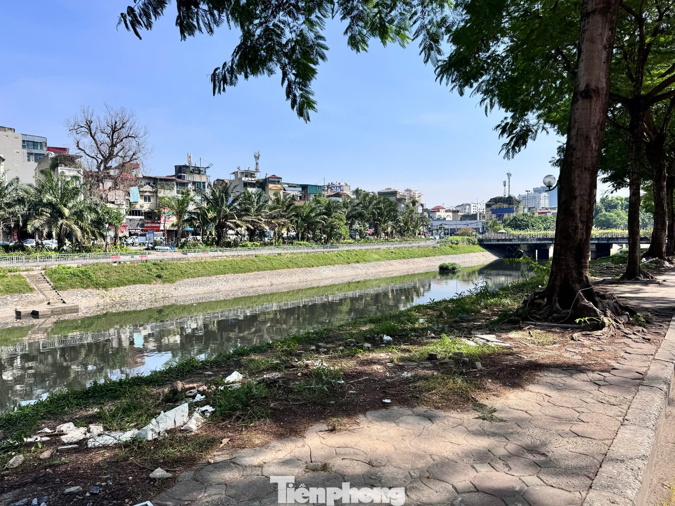 Trên các đoạn vỉa hè sông Tô Lịch, nhiều đoạn vẫn nhếch nhác sau chỉnh trang.