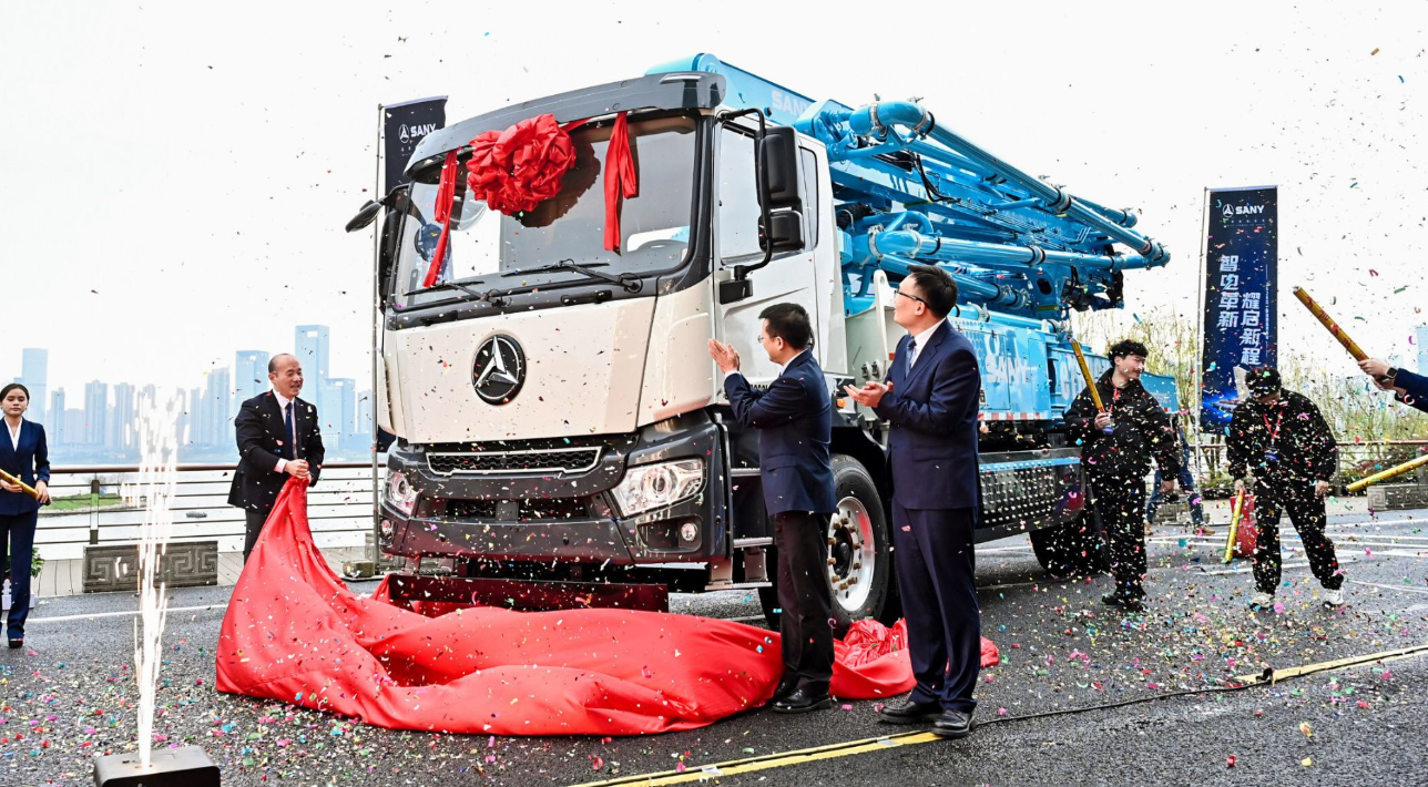 Xe bơm bê tông lai SANY. Ảnh: SANY