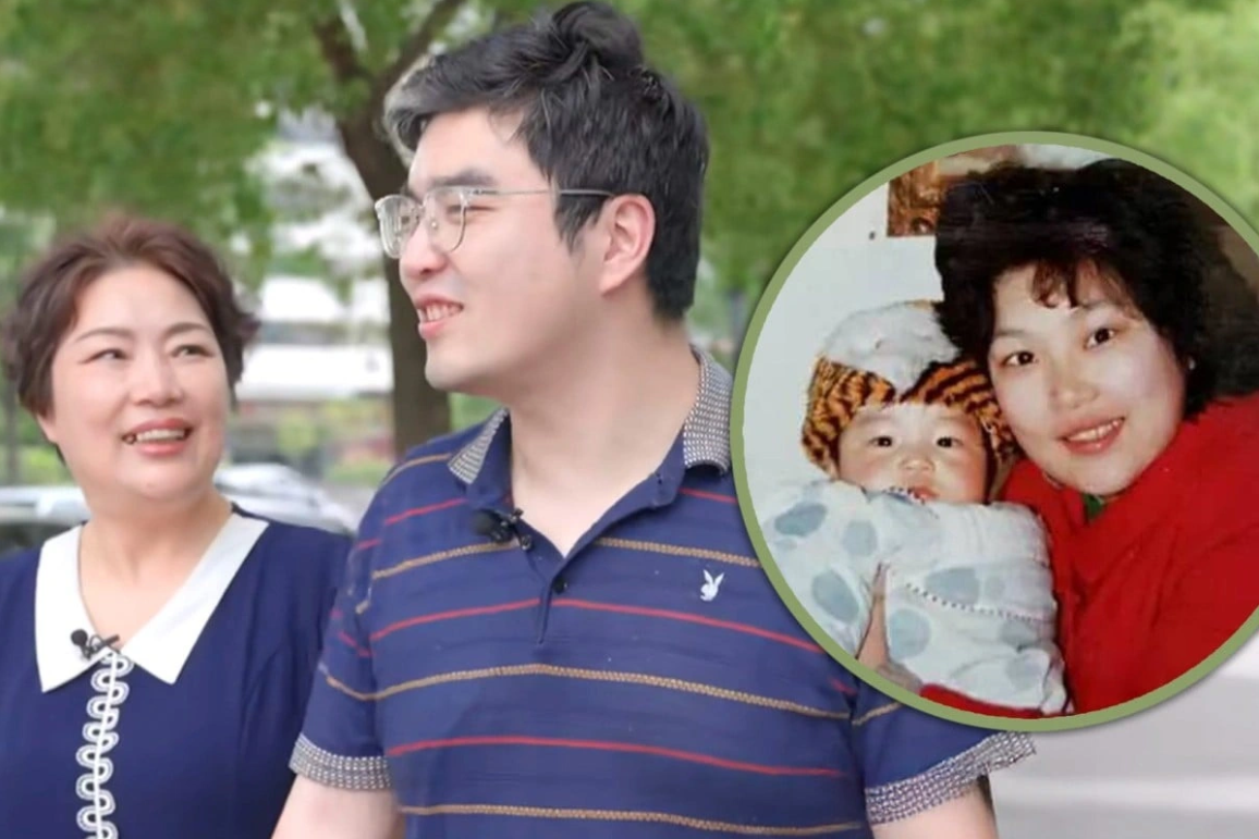 Ảnh hai mẹ con Ding ở hiện tại và khi anh còn nhỏ