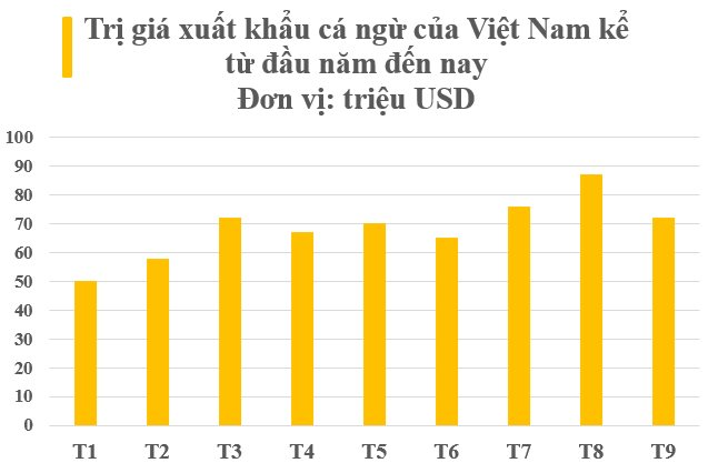 Theo Hiệp hội Chế biến và Xuất khẩu Thủy sản Việt Nam (VASEP), tháng 9/2023, xuất khẩu cá ngừ của nước ta đạt 72 triệu USD, giảm 8% so với cùng kỳ năm 2022. Tính chung trong 9 tháng đầu năm, xuất khẩu cá ngừ mang về 617 triệu USD, giảm 24% so với cùng kỳ năm 2022.