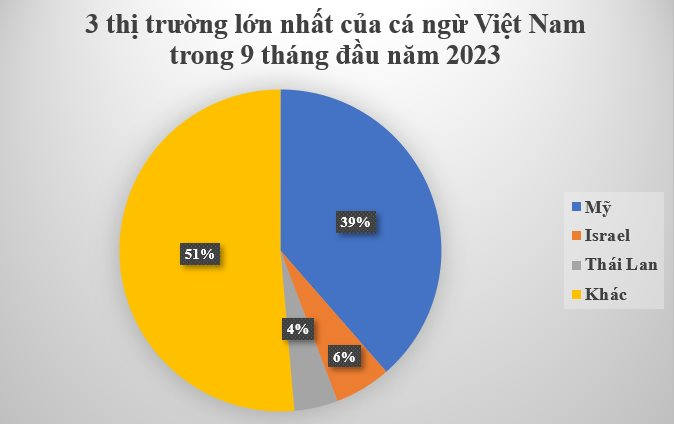 Xét về thị trường, Mỹ là quốc gia lớn nhất nhập khẩu cá ngừ của Việt Nam. Trong 9 tháng đầu năm, xuất khẩu cá ngừ sang thị trường này thu về 238 triệu USD, giảm 41% so với cùng kỳ năm 2022 và chiếm tỷ trọng 38%.