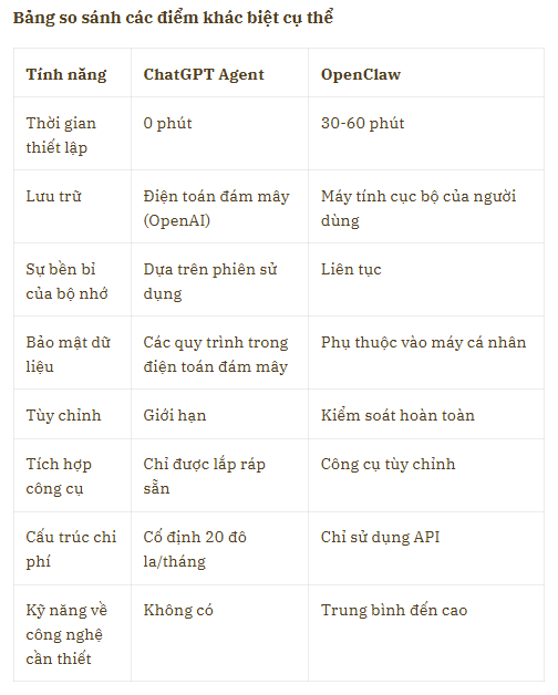 So kè OpenClaw và ChatGPT Agent: AI nào thật sự làm được việc