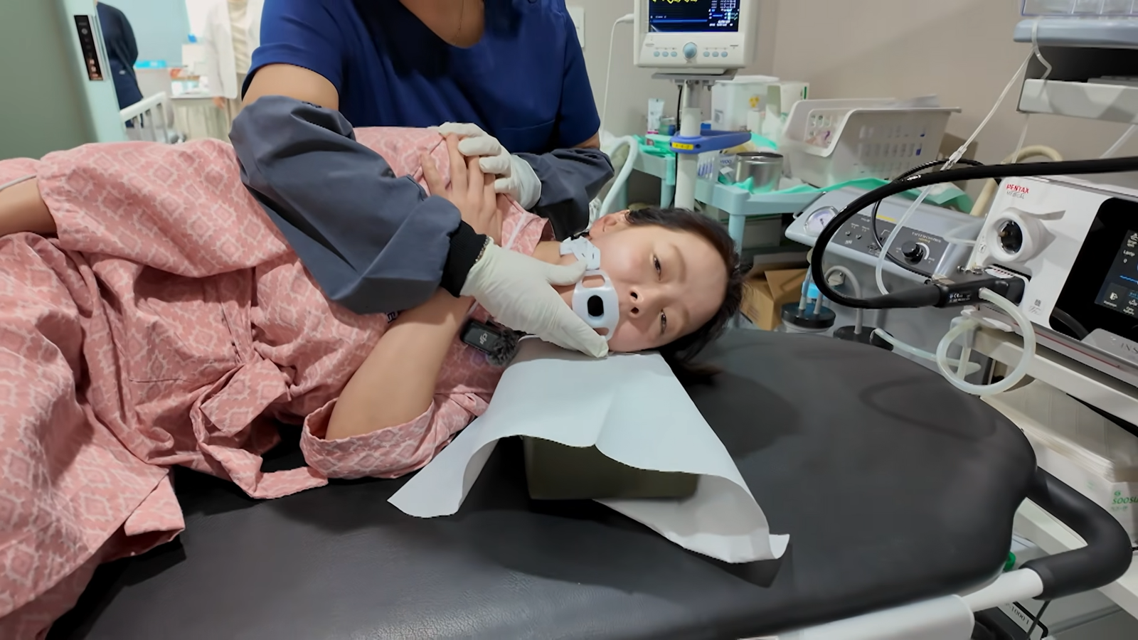 Nữ diễn viên đã được phẫu thuật cắt bỏ polyp đại tràng trong bệnh viện. Ảnh: Naver