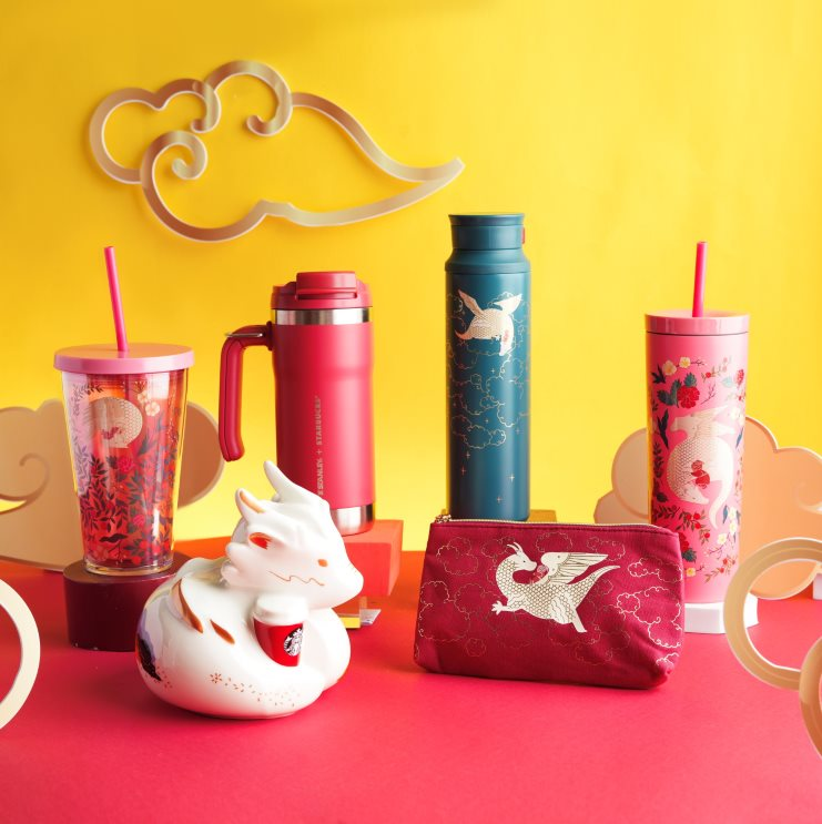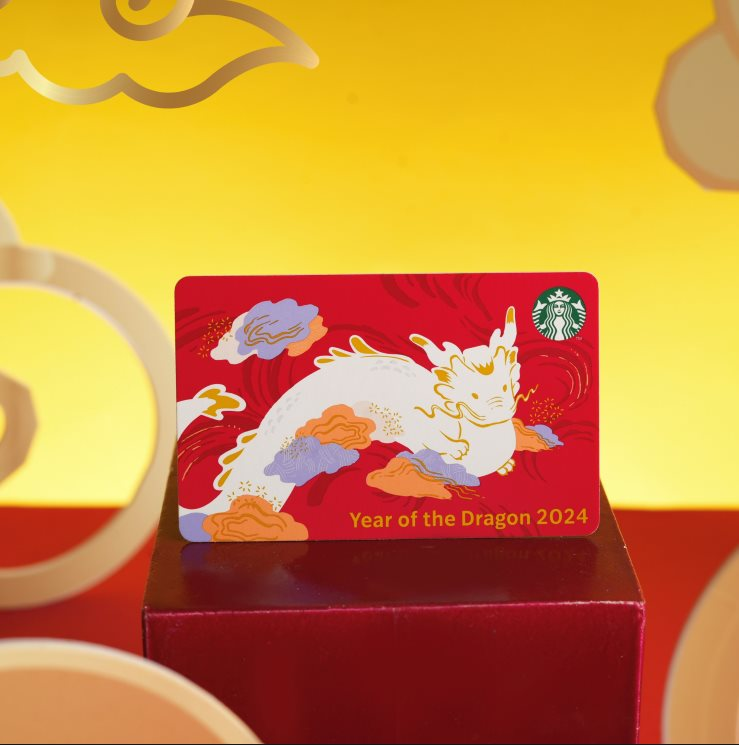 Bên cạnh các sản phẩm ly/cốc/bình tiện dụng, hình ảnh chú rồng còn được thiết kế đặc biệt trên túi, ống đựng tiền hay thẻ Starbucks Rewards để cùng bạn khai xuân như ý.