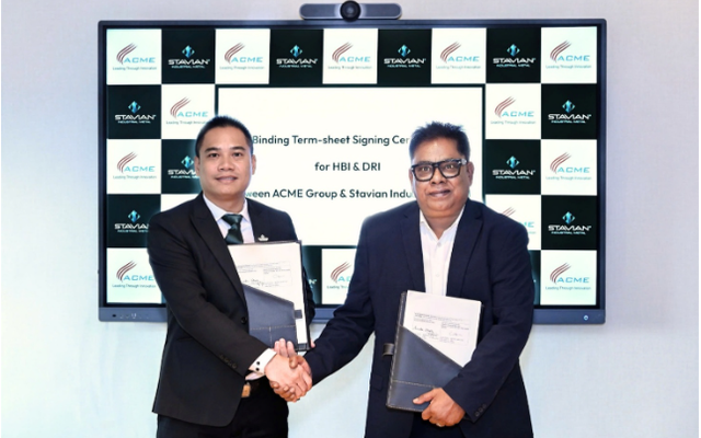 Ngày 6/10/2025, tại Các Tiểu Vương quốc Ả Rập Thống Nhất (UAE), Công ty Cổ phần Kim loại Công nghiệp Stavian (Stavian Industrial Metal) và Tập đoàn ACME – một trong những tập đoàn hàng đầu Ấn Độ trong lĩnh vực năng lượng tái tạo và hydrogen xanh đã ký kết các điều khoản ràng buộc cho Hợp đồng bao tiêu dài hạn sản phẩm thép xanh (HBI & DRI).