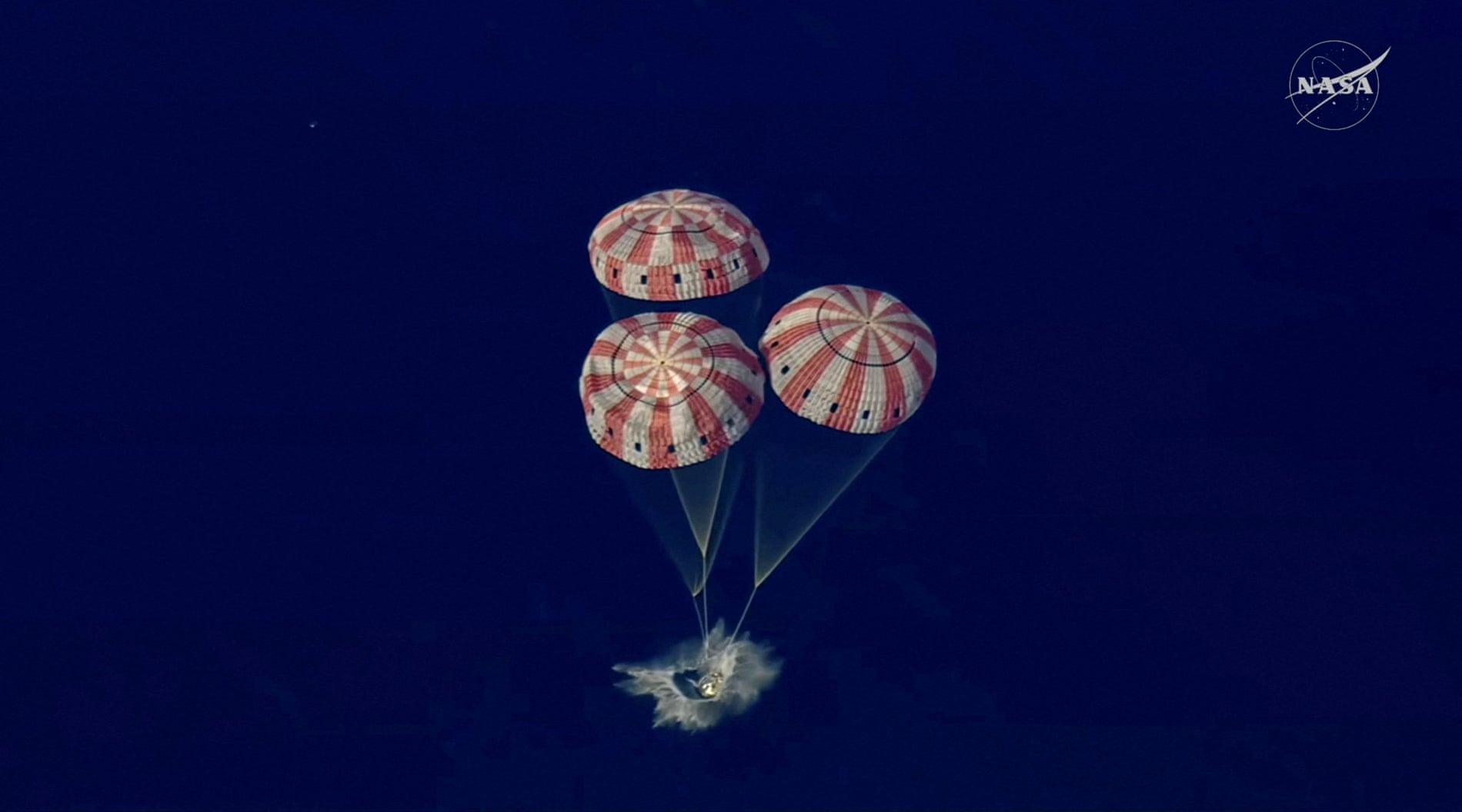 Khoang tàu Orion của sứ mệnh Artemis II đáp xuống Thái Bình Dương - Ảnh chụp màn hình.
