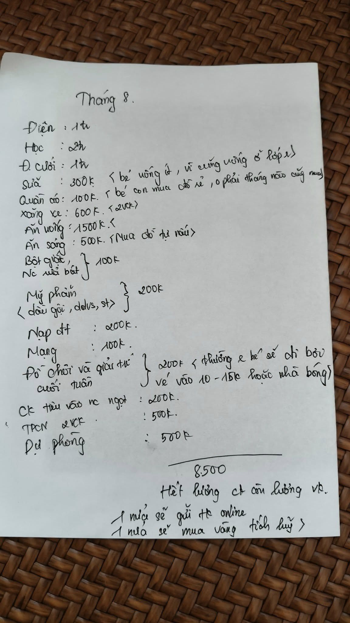 Mỗi tháng tiêu 8,5 triệu để có tiền mua vàng và gửi tiết kiệm