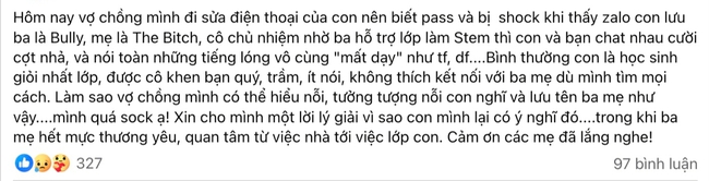 "Làm sao vợ chồng mình có thể hiểu nỗi, tưởng tượng nỗi con nghĩ và lưu tên ba mẹ như vậy... Mình quá sốc ạ! Xin cho mình một lời lý giải vì sao con mình lại có ý nghĩ đó... trong khi ba mẹ hết mực thương yêu, quan tâm từ việc nhà tới việc lớp con", bà mẹ day dứt.