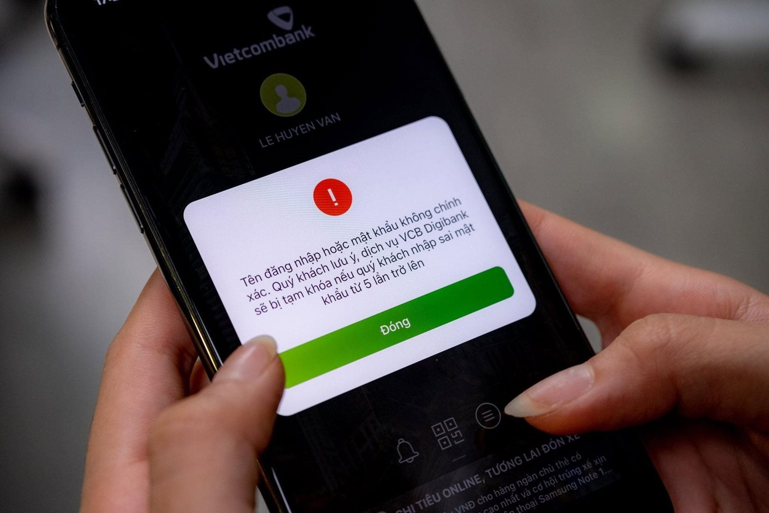2. Tạo hiện trường giả: Đối tượng dùng SĐT của bạn để đăng nhập ứng dụng ngân hàng và cố tình nhập sai mật khẩu nhiều lần. Hệ thống sẽ tự động khóa tài khoản để bảo vệ.