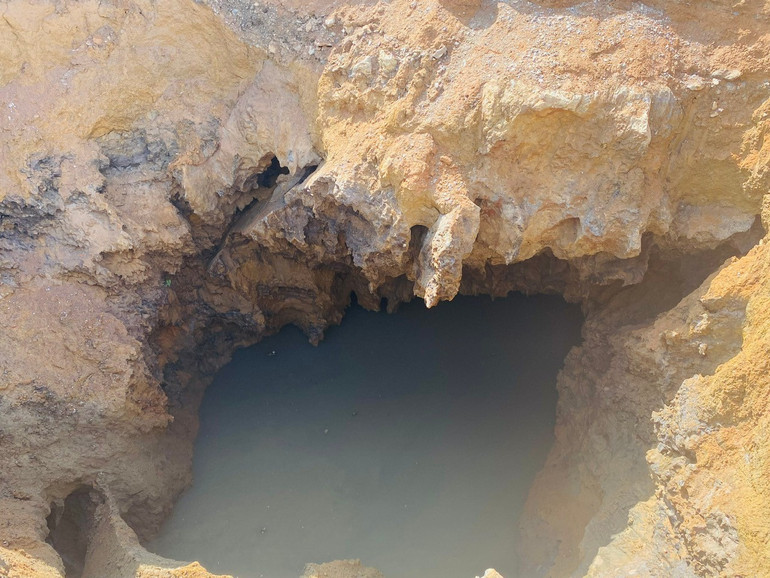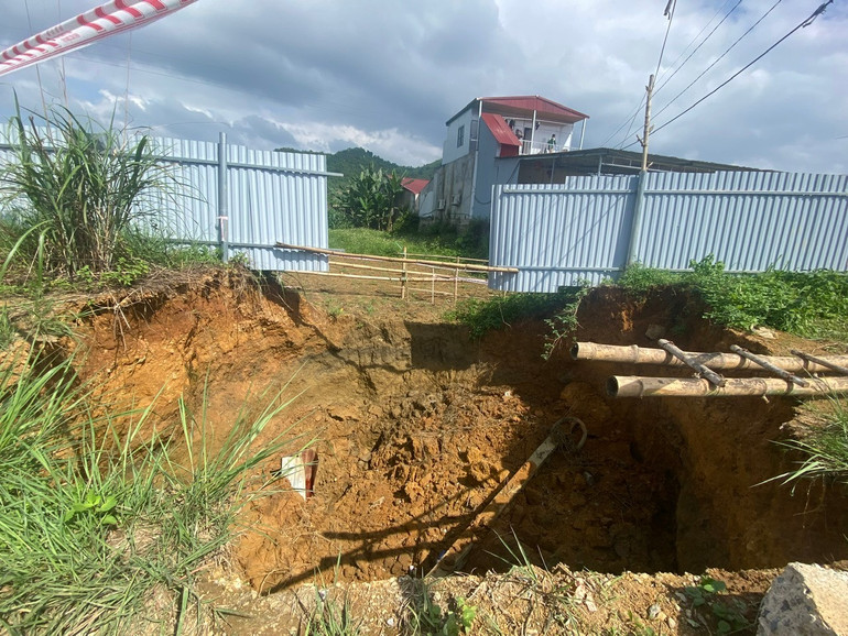 Hố sụt nhỏ bên cạnh cũng tụt sâu hơn.