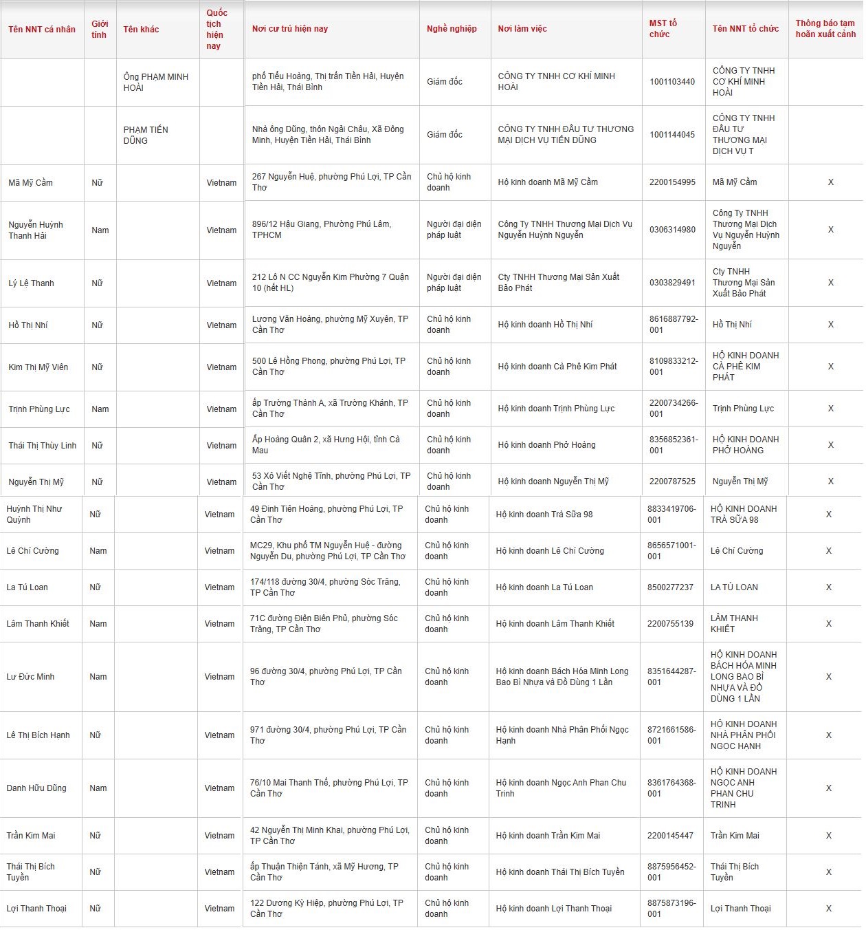 Danh sách chủ doanh nghiệp có thông báo tạm hoãn xuất cảnh: