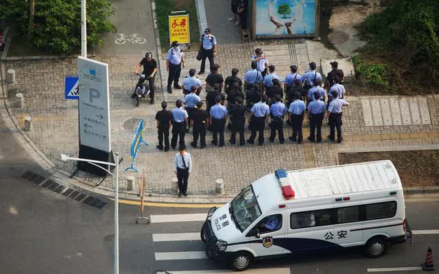 Cảnh sát và bảo vệ tập trung bên ngoài trụ sở Tập đoàn Evergrande ở TP Thâm Quyến hôm 30-9. Ảnh: REUTERS