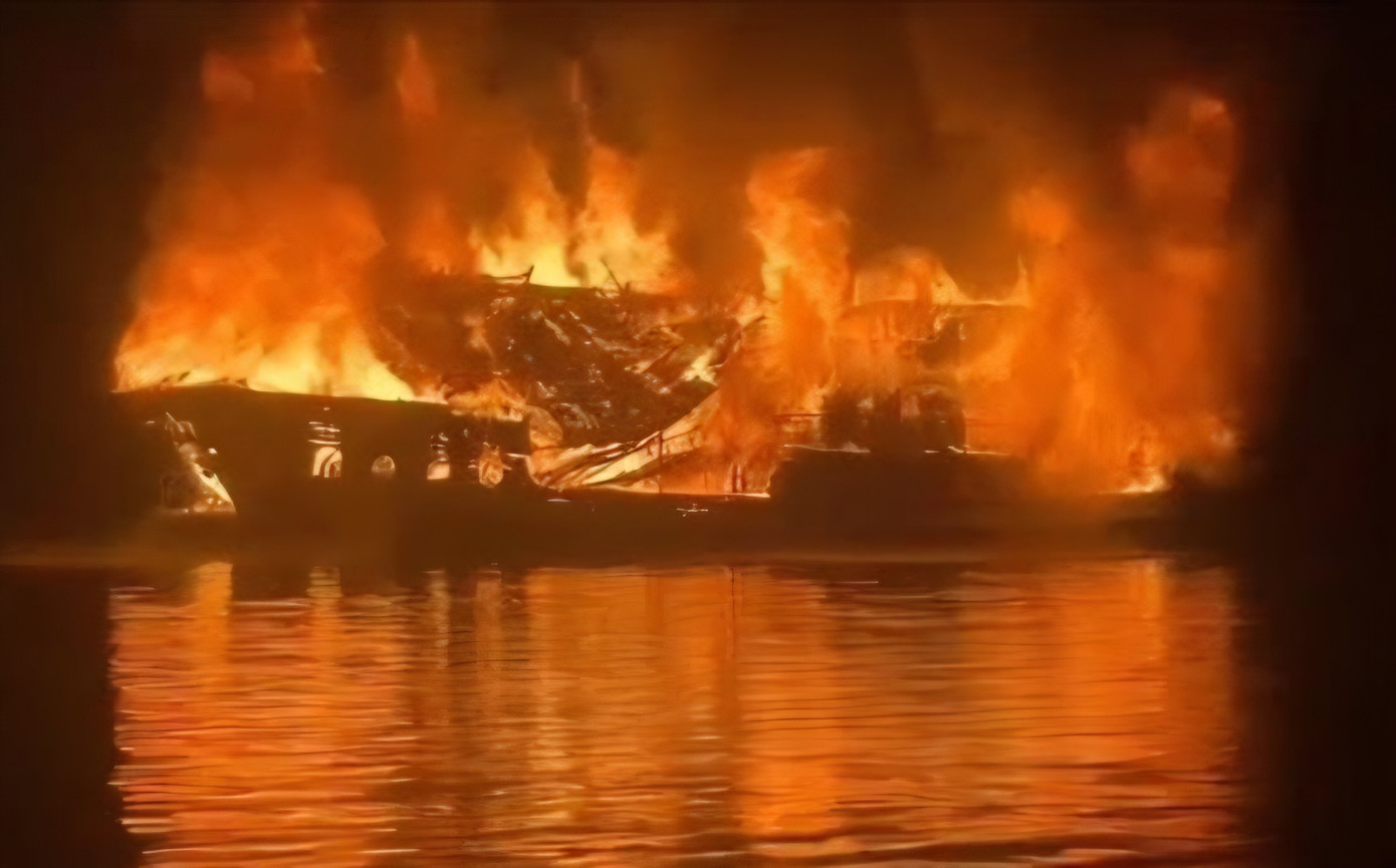 Tàu du lịch cháy như đuốc trên vịnh Hạ Long.