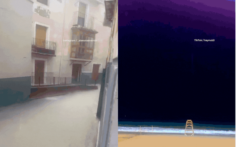 Trong khi đó, tại Benidorm, du khách buộc phải tìm nơi trú ẩn khi những cơn bão lớn kèm sấm sét ập xuống khu vực Alicante. Các bãi biển và quán bar yên bình trở nên vắng vẻ khi sấm sét dữ dội ập đến. Video trên mạng xã hội cho thấy các điểm du lịch nổi tiếng trở nên hoang vắng khi du khách ở trong nhà để tránh thời tiết khắc nghiệt.
