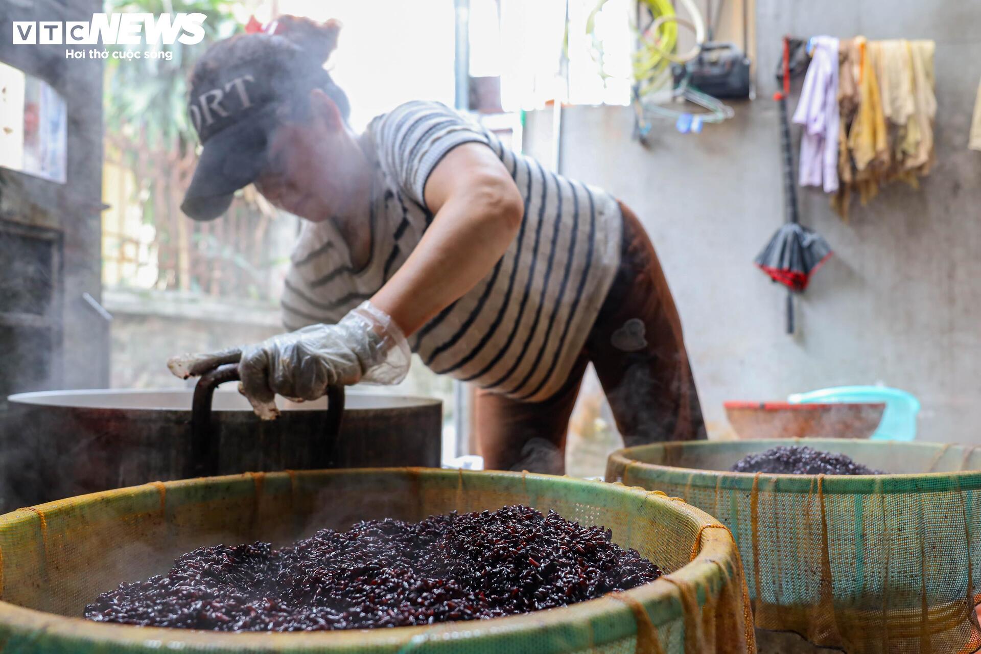 Theo chị Thủy, công đoạn nấu chín cơm gạo nếp là khó nhất vì phải đun cạn nước và phải cẩn thận trông từng chút một, nếu không cơm sẽ cháy hoặc khê.