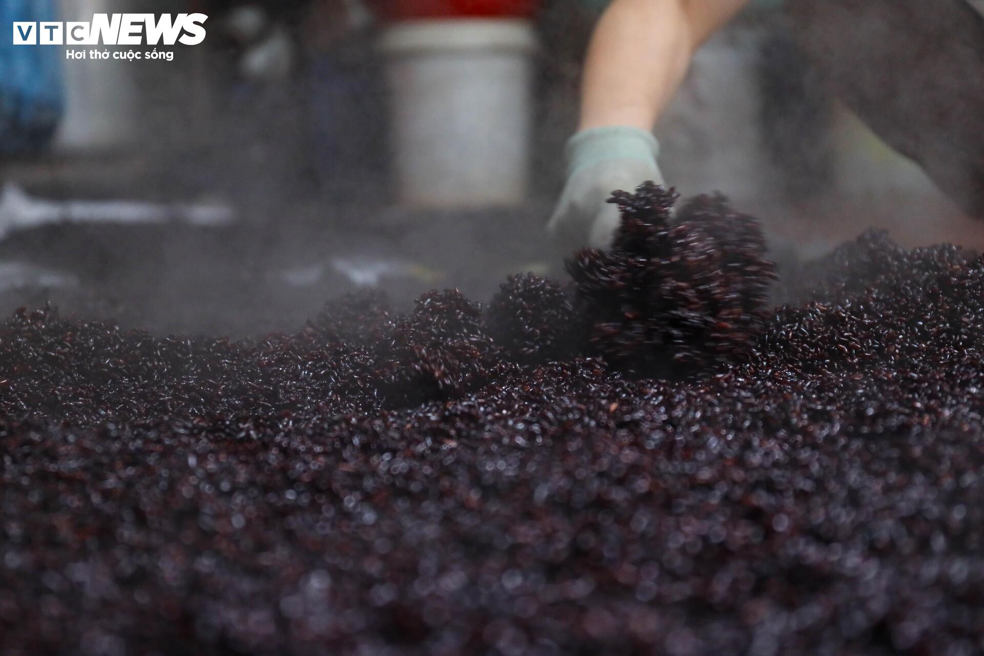 Gạo nếp sau khi chín sẽ tiếp tục được mang đi đồ trong 15 phút để hạt được mềm, dẻo.