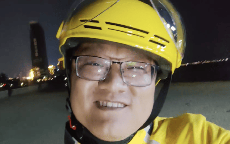 Lão Phạm trong bộ đồng phục shipper. Ảnh: Sohu