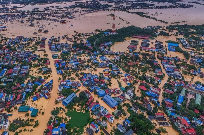 Nhiều khu dân cư ở Thái Nguyên bị nước lũ cô lập. Ảnh: MXH