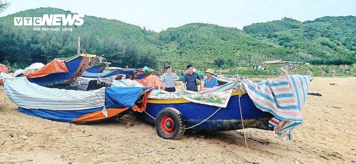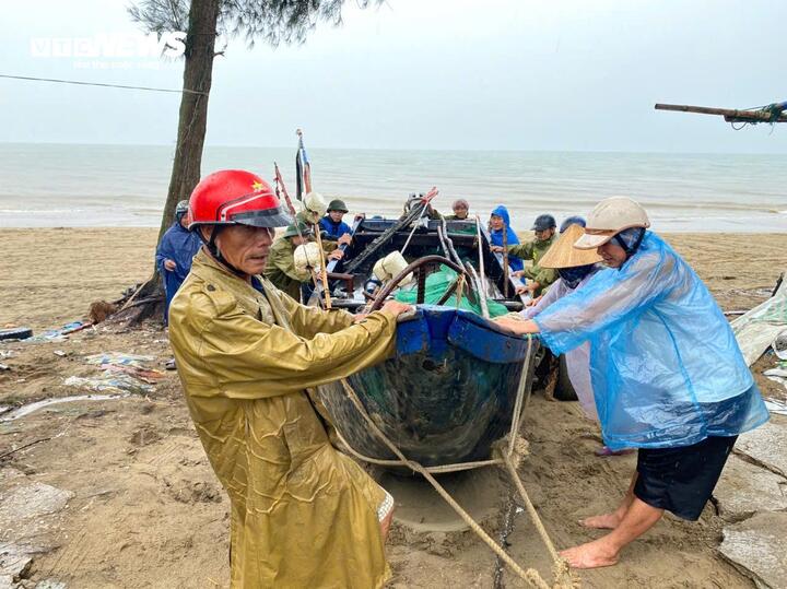 Ngư dân xã Kỳ Anh (tỉnh Hà Tĩnh) đưa thuyền lên bờ tránh bão.