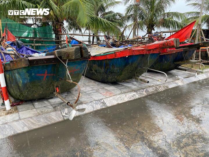 Tàu thuyền đưa lên bờ nhưng được sắp xếp ngăn nắp, gọn gàng không làm ảnh hưởng đến giao thông trên bộ.