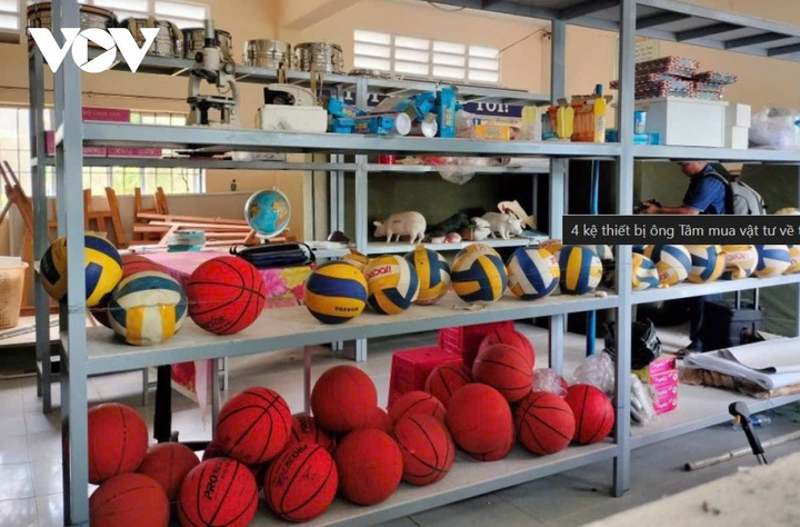 Kệ đựng dụng cụ ông Tâm tự làm đang được sử dụng tại trường. (Ảnh: Trần Hiếu/VOV-ĐBSCL)