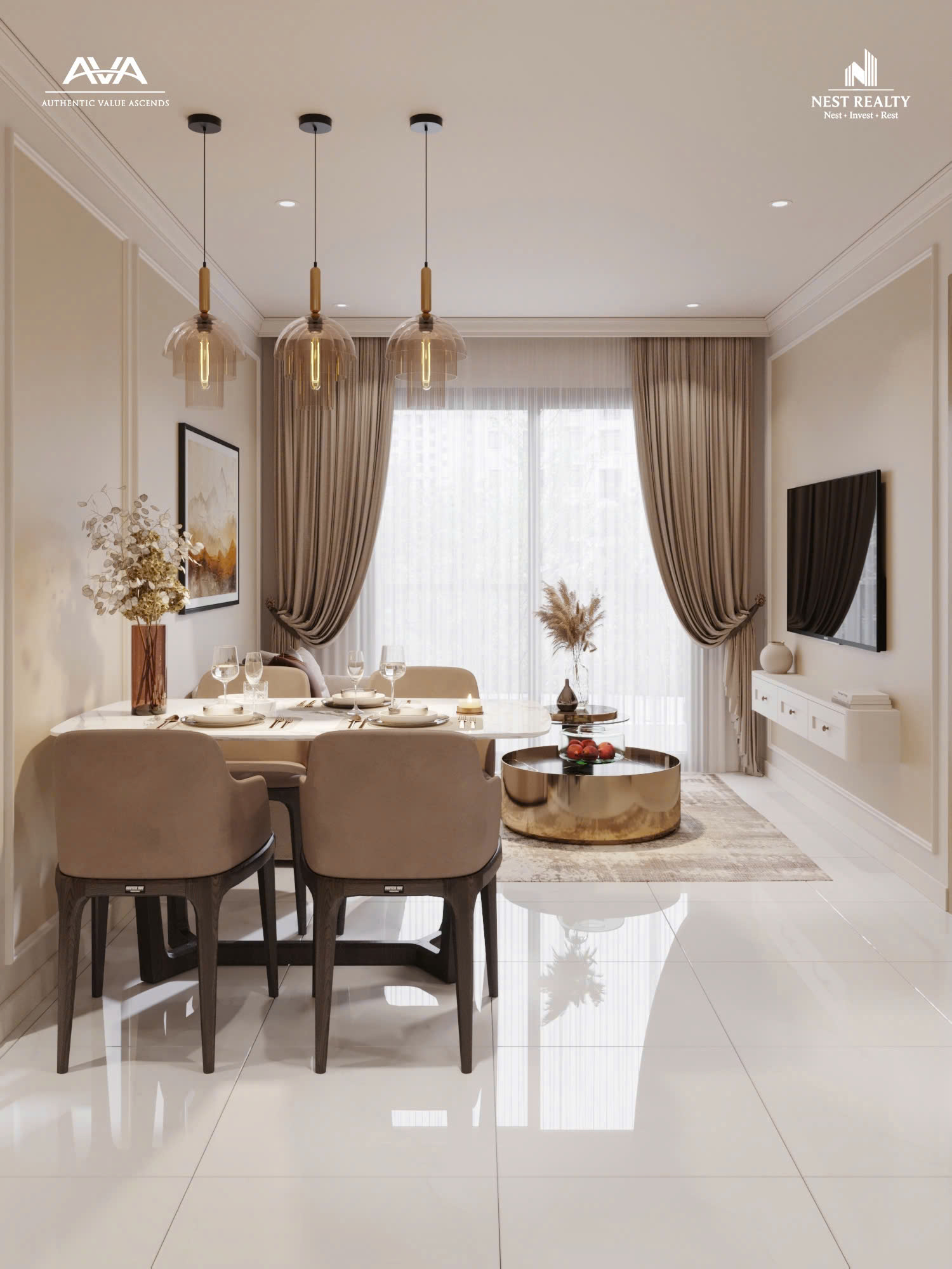 Căn hộ ở tầng cao tại AVA thường đón được nhiều ánh sáng và gió tự nhiên hơn, góp phần tạo nên không gian sống thông thoáng