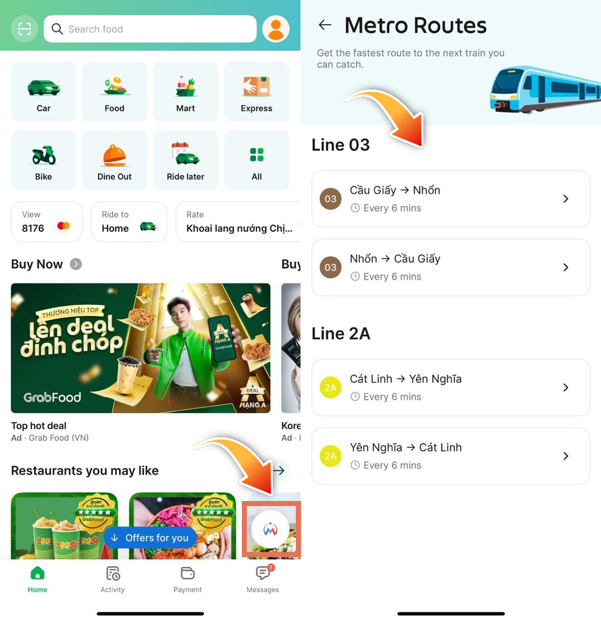Tại Hà Nội: Cách tra cứu tuyến Metro Cát Linh - Hà Đông và Nhổn - ga Hà Nội trên Grab