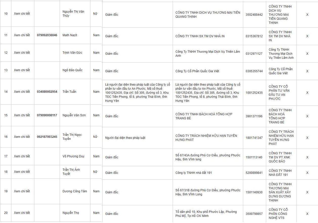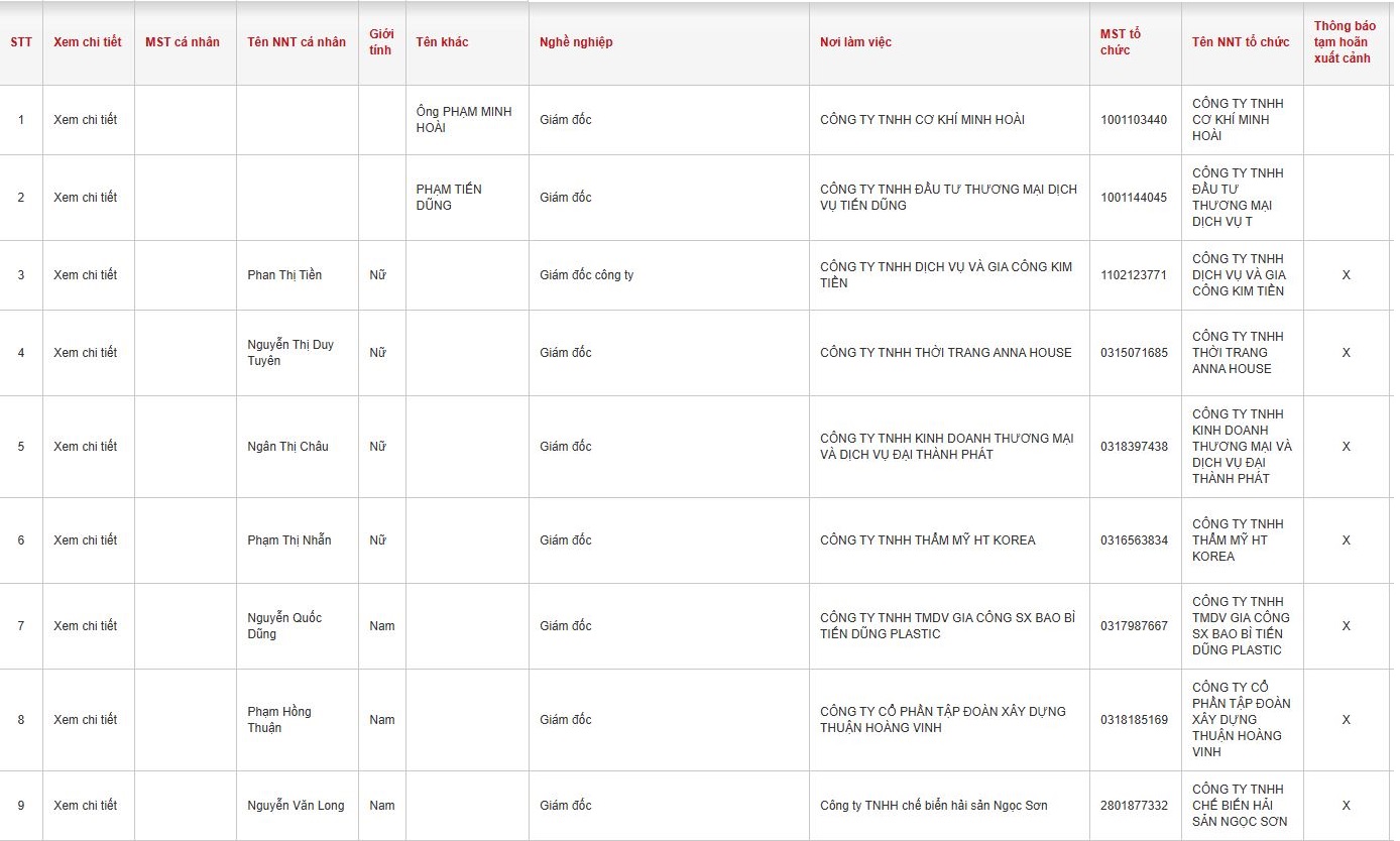 Dưới đây là danh sách người nộp thuế vừa bị tạm hoãn xuất cảnh: