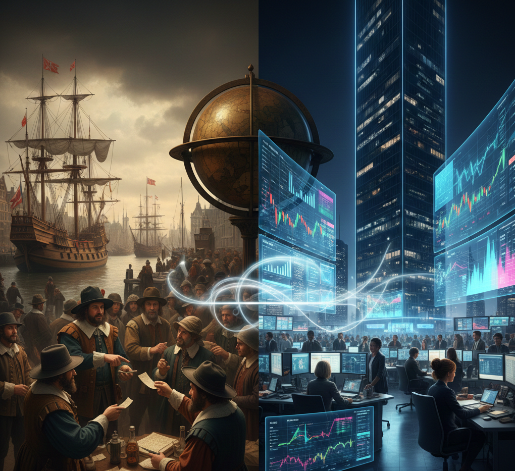 Thị trường chứng khoán không ra đời từ nhu cầu đầu cơ, mà từ những giới hạn rất thực của nền kinh tế: tiền không đủ để vận hành các quan hệ kinh tế phức tạp, rủi ro vượt quá khả năng của một cá nhân và vốn cần được huy động ở quy mô xã hội. Việc hiểu đúng lịch sử hình thành và bản chất của cổ phiếu giúp nhìn chứng khoán như một hạ tầng kinh tế quan trọng, nơi doanh nghiệp huy động vốn và chia sẻ rủi ro, còn nhà đầu tư tham gia vào giá trị dài hạn của những doanh nghiệp thật.