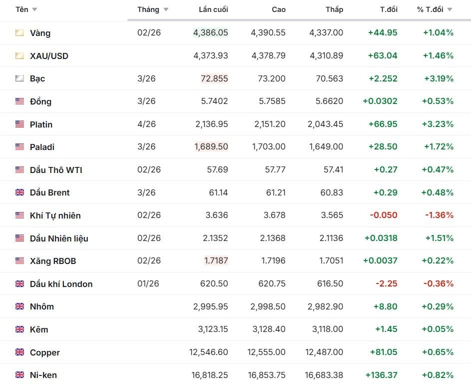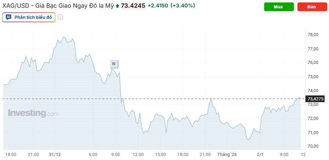 Kim loại quý tiếp tục là tâm điểm chú ý khi bước sang phiên giao dịch đầu năm mới. Giá vàng giao ngay tăng 0,9% lên 4.351,70 USD/ounce trong phiên châu Á, còn giá bạc tăng tới 2% lên 72,63 USD/ounce. Năm 2025 chứng kiến mức tăng mạnh nhất của vàng trong 46 năm, trong khi bạc và bạch kim đều đạt kỷ lục, được hỗ trợ bởi việc Fed cắt giảm lãi suất, căng thẳng địa chính trị, hoạt động mua vào mạnh mẽ của các ngân hàng trung ương và dòng vốn ETF. Theo ông Vishnu Varathan của Mizuho, đà tăng này còn phản ánh nhu cầu phòng ngừa rủi ro trước sự suy yếu kéo dài của đồng USD.