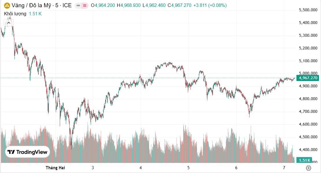 Giá vàng thế giới hôm nay giao dịch quanh 4.966 USD/ounce, chốt tuần tăng gần 80 USD so với tuần trước, nhưng vẫn nằm dưới mốc tâm lý 5.000 USD. Tuần qua, thị trường vàng trải qua một trong những giai đoạn biến động dữ dội nhất lịch sử gần đây, với biên độ dao động hàng trăm USD chỉ trong một phiên, phản ánh tâm lý bất ổn sâu sắc của giới đầu tư.
