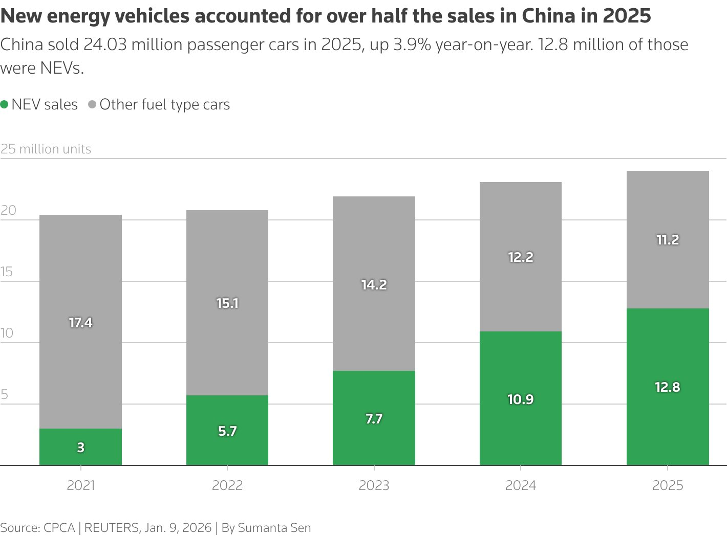 Tại Trung Quốc, xe năng lượng mới hiện đã chiếm hơn 50% tổng doanh số bán xe toàn thị trường.