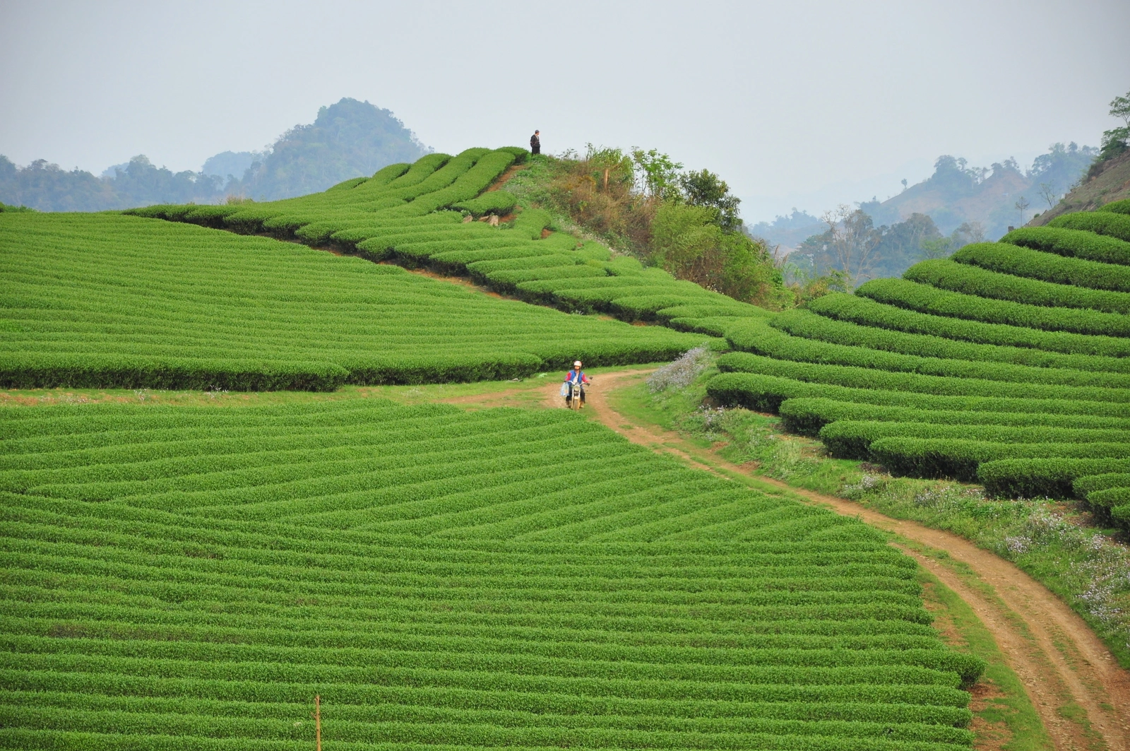 Nổi bật trước tiên là những đồi chè xanh mướt trải dài khắp cao nguyên. Các khu vực như đồi chè Mộc Châu gây ấn tượng với những luống chè uốn lượn theo triền đồi, tạo nên khung cảnh vừa nên thơ vừa dễ chịu.
