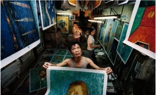 Những người thợ vẽ trong xưởng được phân công lao động rõ ràng. Một người phụ trách vẽ mắt, một người phụ trách môi… Ngày này qua tháng khác, công việc cứ lặp đi lặp lại, chỉ là chép những bức tranh nổi tiếng. Họ làm quen tay đến nỗi là có thể vẽ một bức tranh mà không cần nhìn vào bức tranh gốc.