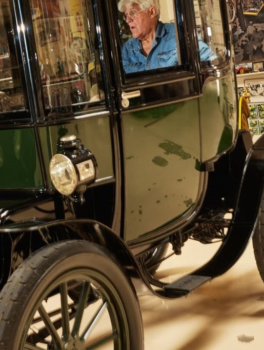 Chiếc xe điện cổ này có khung gỗ và bánh xe cao su 36 inch. Nó, trông giống như một chiếc xe ngựa nhưng được đẩy bằng động cơ điện và pin giống như Tesla Model Y hoặc Cadillac Lyriq ngày nay, đã khiến mọi người trên đường phố Burbank, California nhìn theo trong kinh ngạc khi ông Leno bon bon lái xe quanh thị trấn.