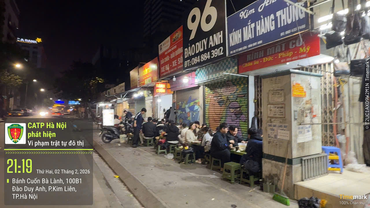 Vi phạm sử dụng trái phép vỉa hè để kinh doanh dịch vụ ăn uống tại trước số 96 Đào Duy Anh, phường Kim Liên