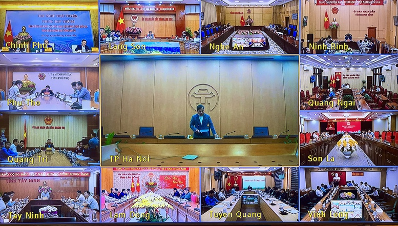 Phiên họp được kết nối trực tuyến với đầu cầu 27 tỉnh, thành phố đang có các công trình, dự án quan trọng quốc gia, trọng điểm ngành giao thông vận tải trên địa bàn - Ảnh: VGP/Nhật Bắc