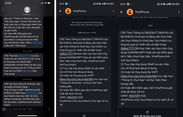 Vinaphone khuyến nghị người dùng chủ động kiểm tra thông tin thuê bao trên các ứng dụng như MyVNPT, VNeID và hoàn tất xác thực sớm nhằm đảm bảo duy trì dịch vụ liên tục, đồng thời hạn chế rủi ro liên quan đến thông tin cá nhân trên môi trường số.