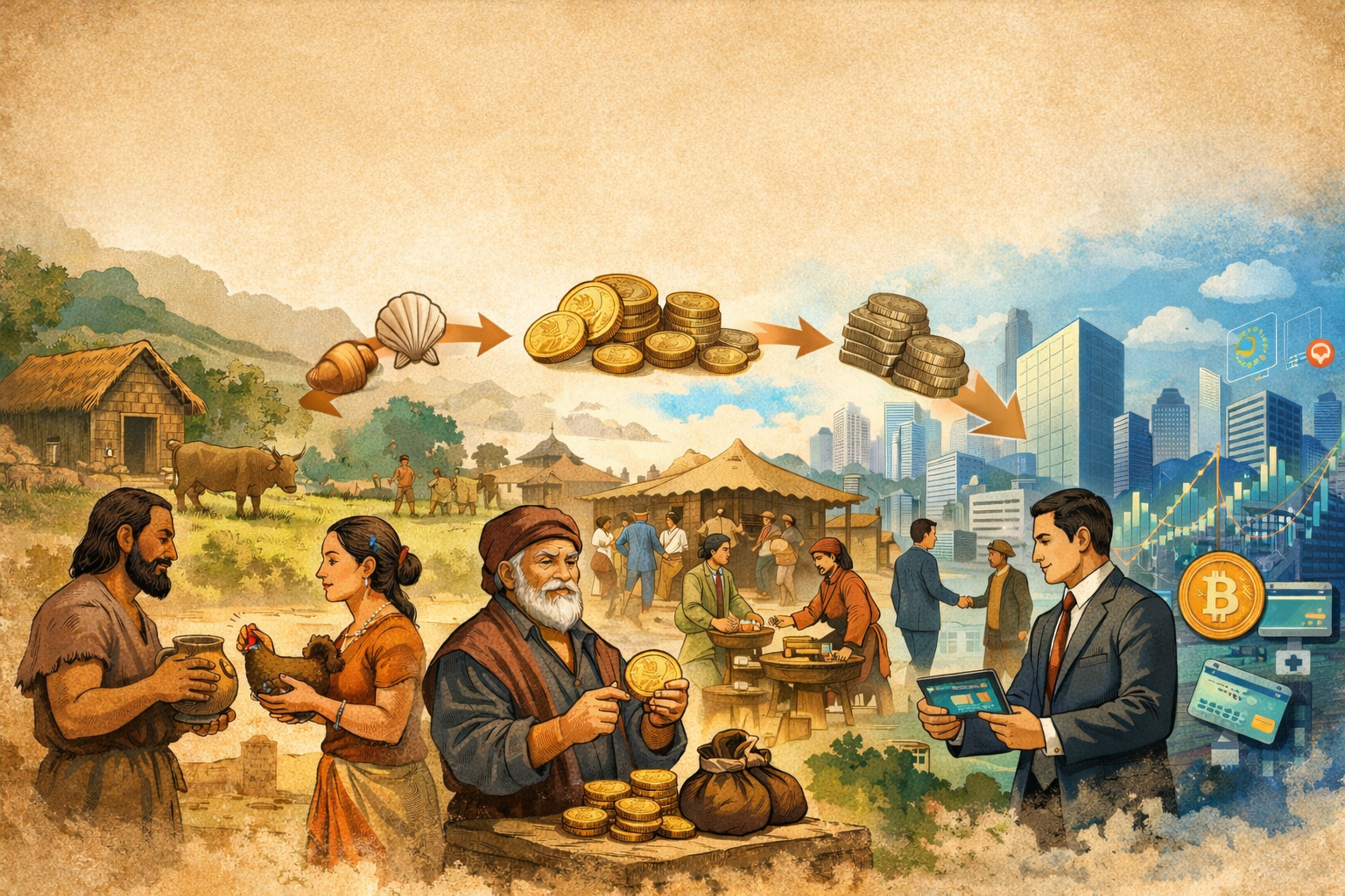 Tiền không xuất hiện ngay từ đầu lịch sử loài người. Chỉ khi xã hội mở rộng và hoạt động trao đổi trở nên phức tạp, con người mới cần một phương tiện chung để giao dịch. Vì vậy, lịch sử tiền không chỉ là câu chuyện kinh tế, mà còn phản ánh cách xã hội tổ chức, phân công lao động và xây dựng niềm tin.