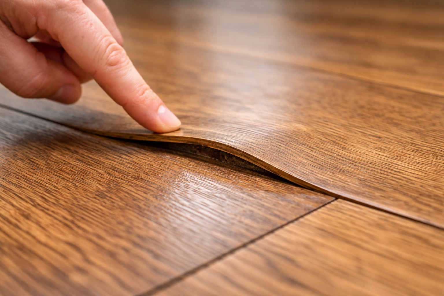 Lúc thợ đến kiểm tra, họ nói thẳng: “Chỉ cần vài lần đổ trực tiếp nước lau sàn là lớp keo dưới mặt gỗ sẽ bong, mép gỗ sẽ đội lên. Không sửa được – phải thay tấm mới”.