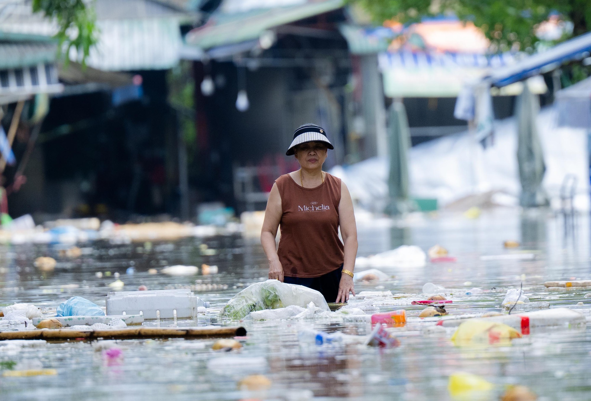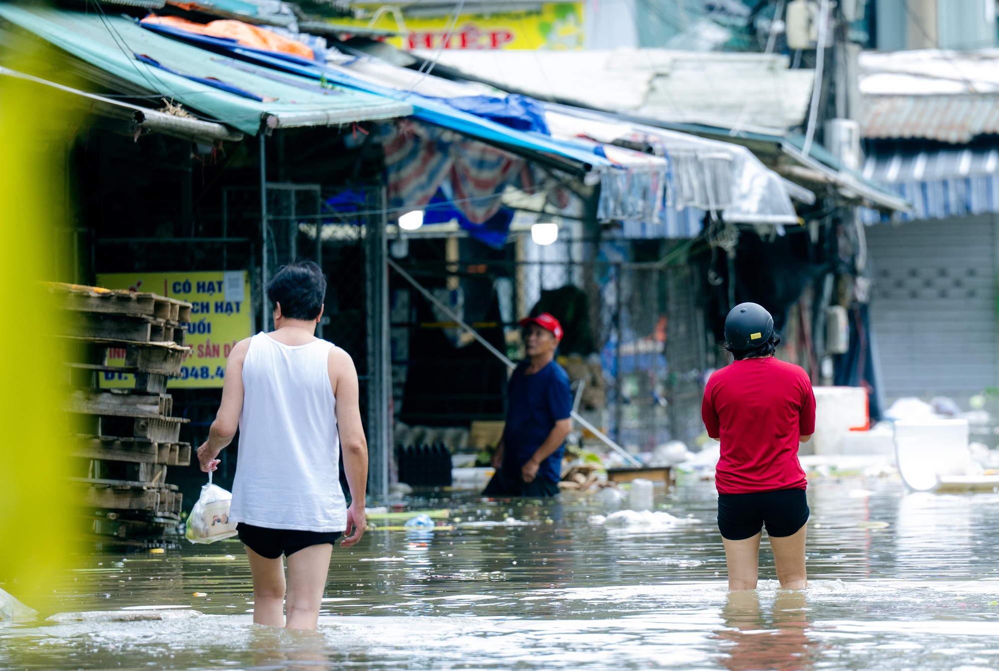“Tôi còn nhớ rõ năm 2009, nước đã dâng cao ngập cả vào trong nhà. Vậy mà giờ, sau 15 năm, cảnh tượng ấy lại lặp lại. Bà con chúng tôi lại phải chứng kiến trận ngập sâu đến thế này,” một tiểu thương lớn tuổi chia sẻ