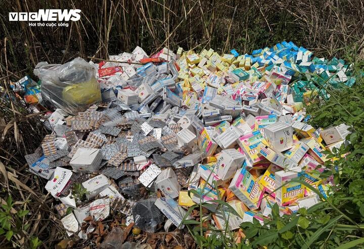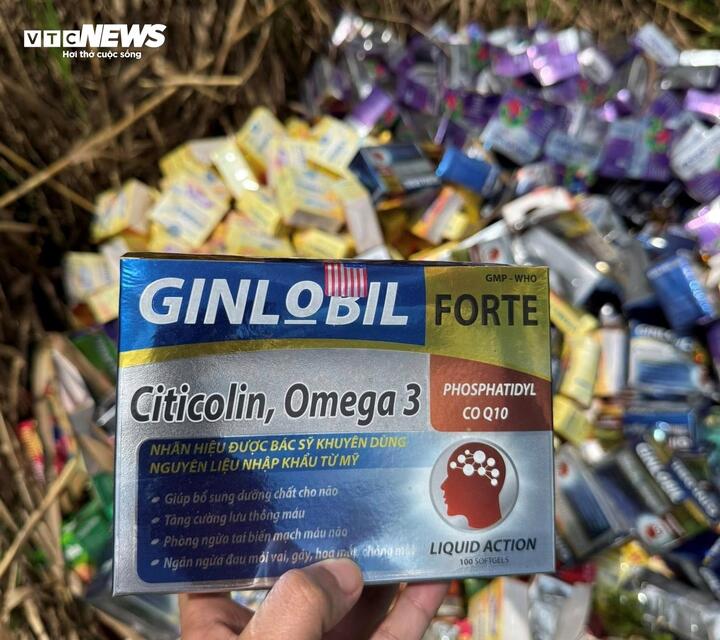 Bước đầu, lực lượng chức năng ghi nhận có 5 bãi đổ thuốc, thực phẩm chức năng dành cho người lớn và trẻ em. Trên bao bì có các loại thuốc, thực phẩm chức năng như Ginlobil, Vitamin A-D, Nattobet, Homramin Ginseng…Ngoài 5 bãi này còn có 1 bãi đã được đốt cháy hoàn toàn với diện tích khoảng 20m2.